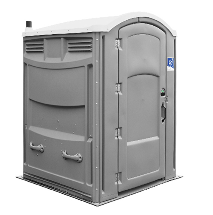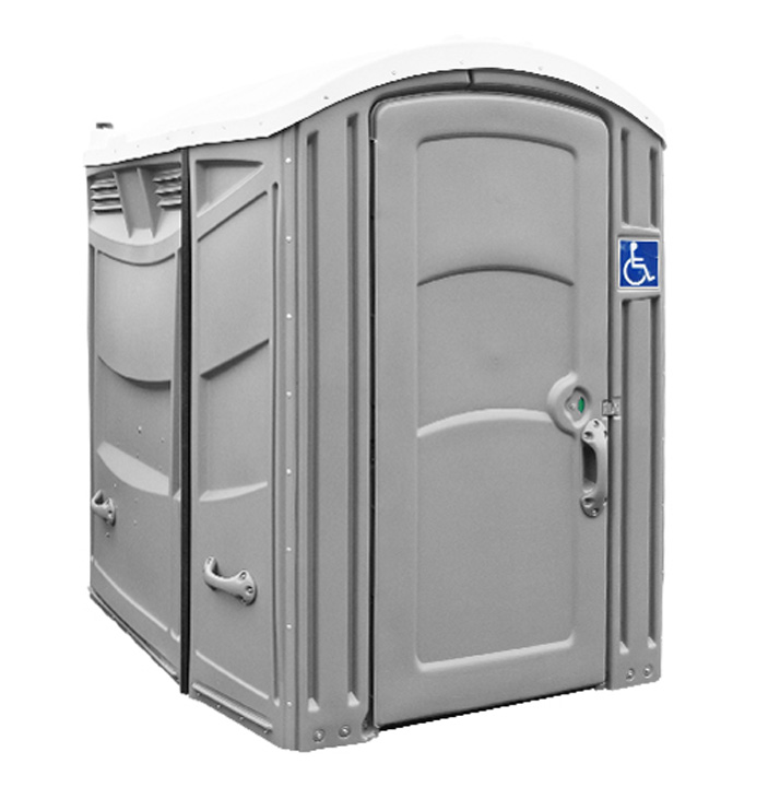This wheelchair accessible portable restroom is compliant with ADA and Title 24 regulations. It features increased interior space than the standard wheelchair accessible restroom and also has a larger door opening.